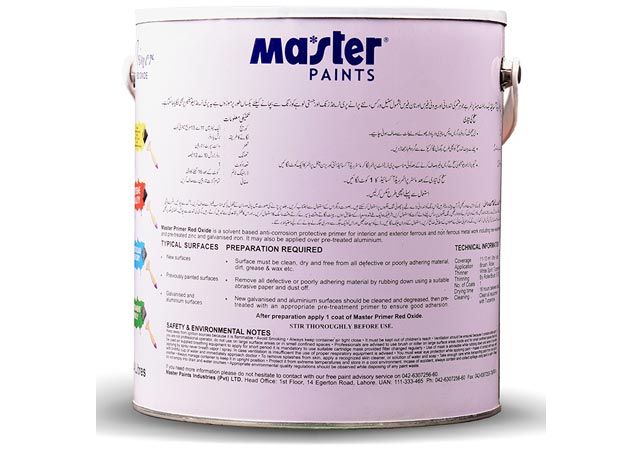 Master Primer Red Oxide is a solvent based anti-corrosive and Anti-rust primer based on alkyd resin.